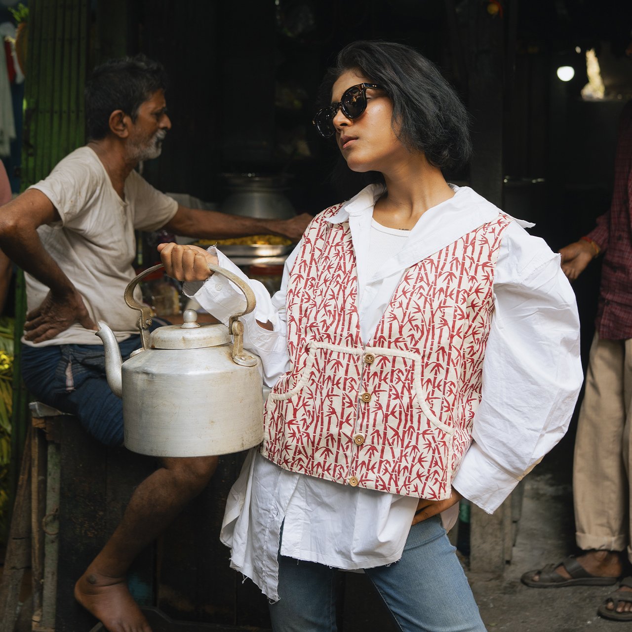 Sleeveless Summer Jackets Made With Block Printed Cotton Flex Fabric .