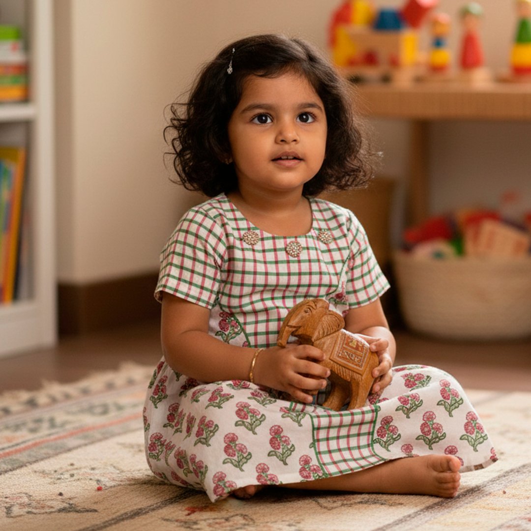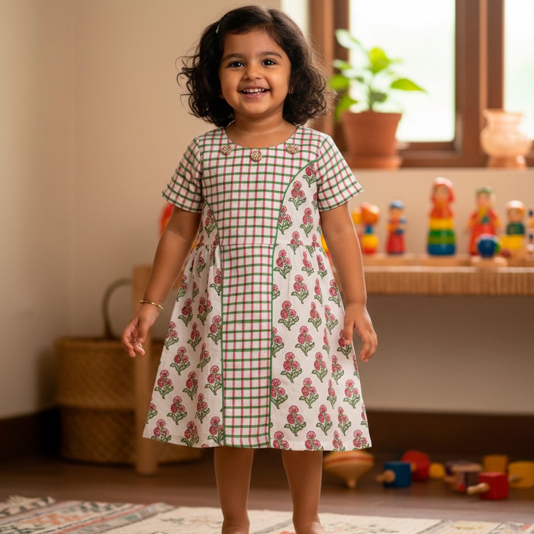 Ideal for casual outings, birthdays, or summer playdates, this frock is a beautiful celebration of traditional textile arts tailored for modern comfort.