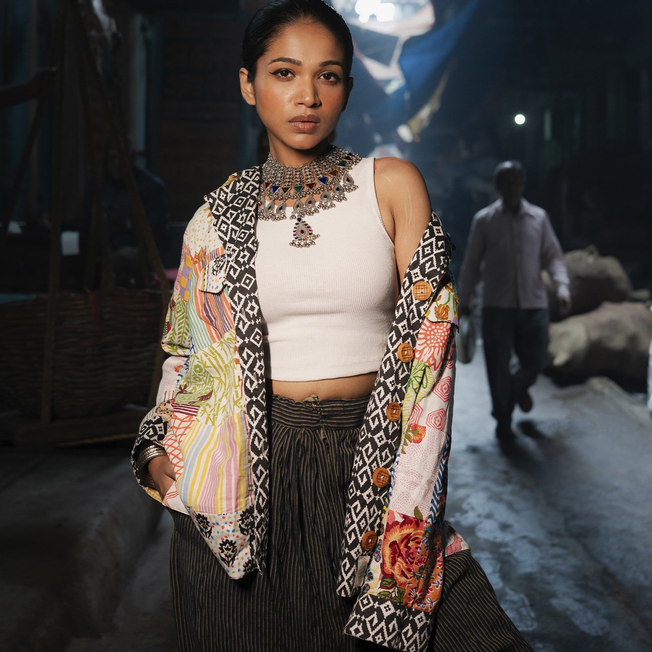 Block Printed Patch Work Cotton Summer JacketBlock Printed Patch Work Cotton Summer Jacket