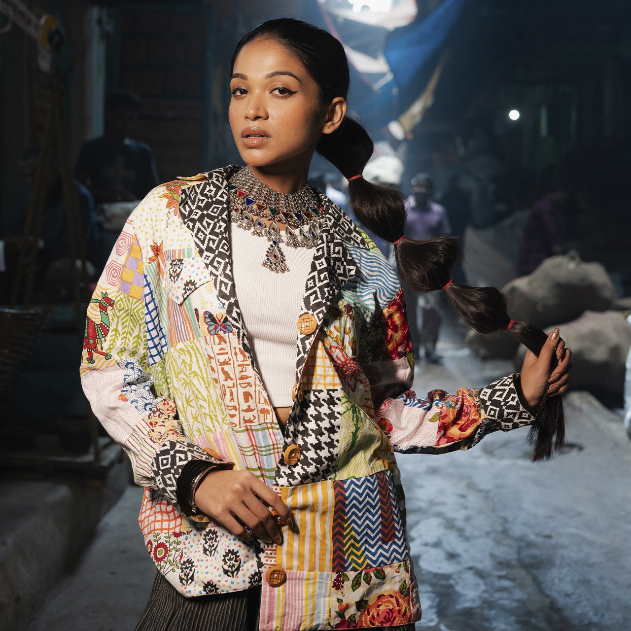 Full Sleeves Block Print Patch Work Jacket For Women.