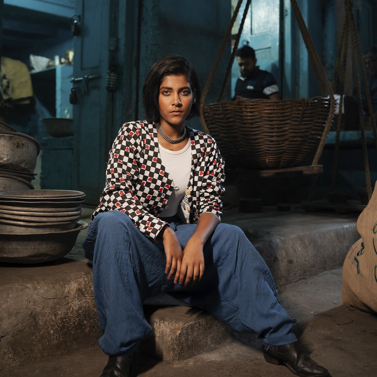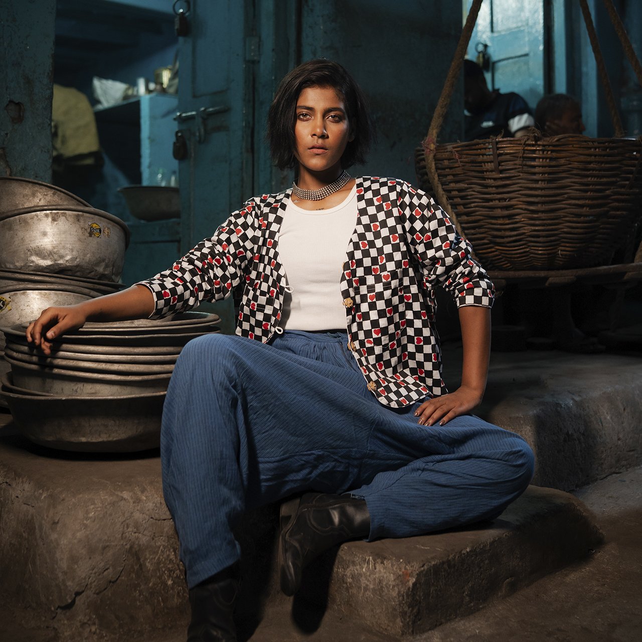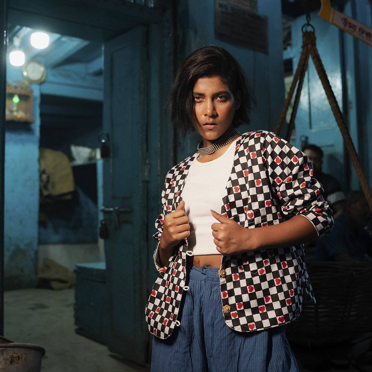 Block Printed Reversible Cotton Summer Jacket Check Heart Pattern