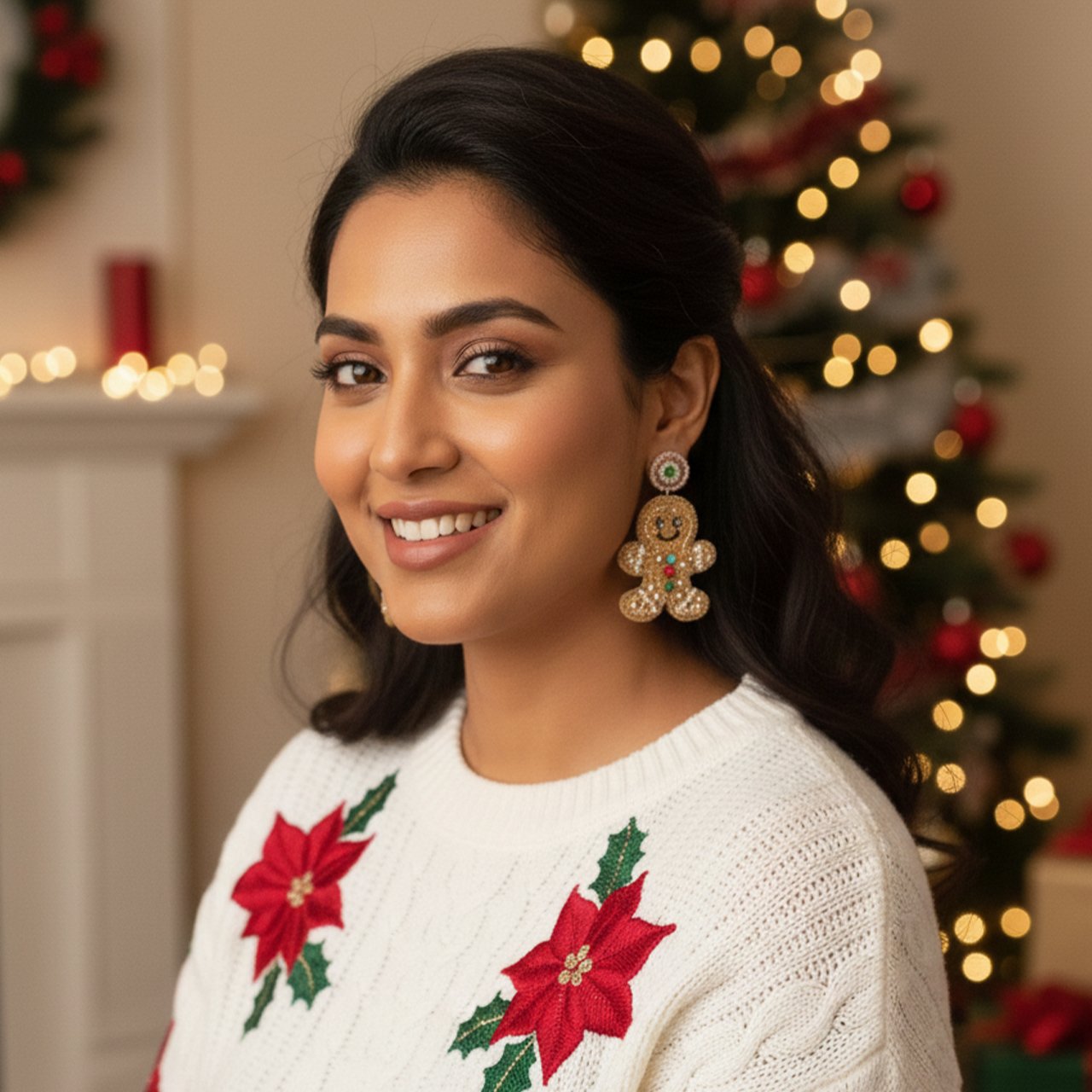 Design: Each earring features an intricately beaded gingerbread man, outlined in gold thread or tiny gold beads for a sparkling, festive look.