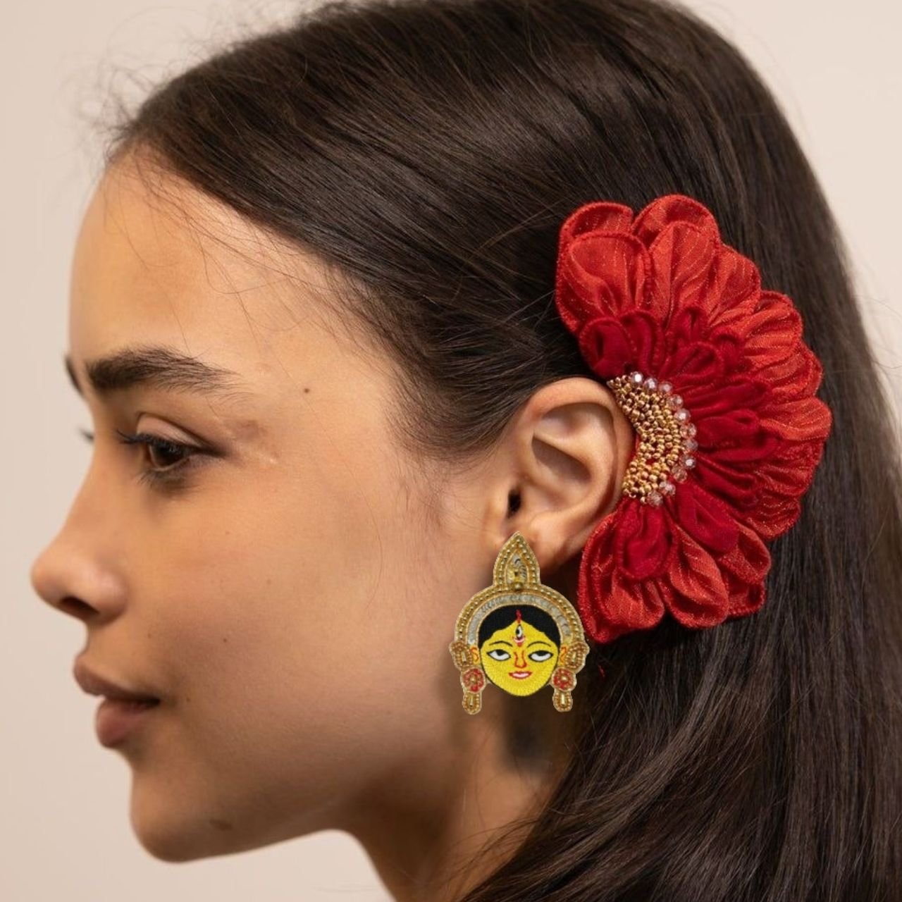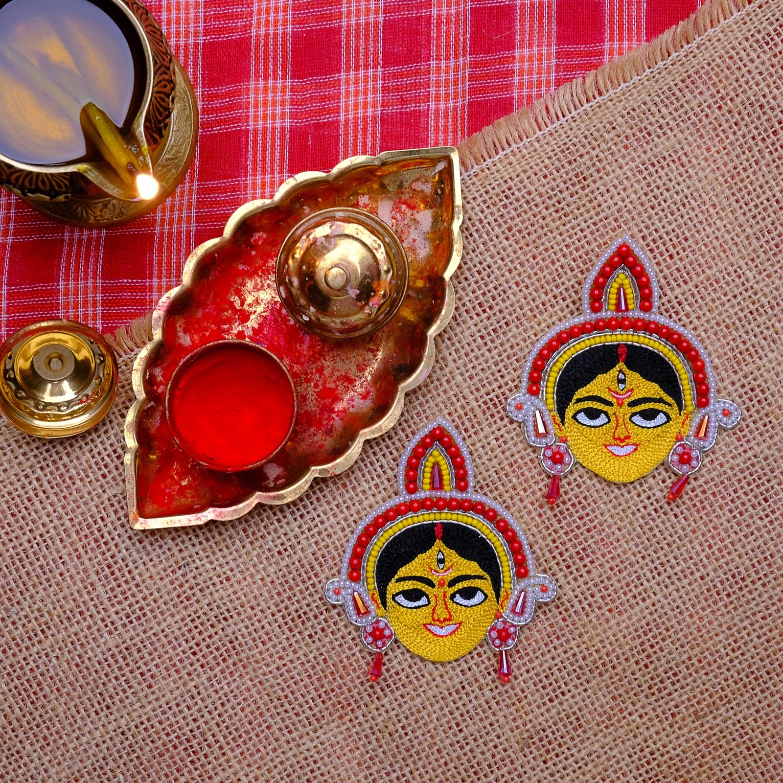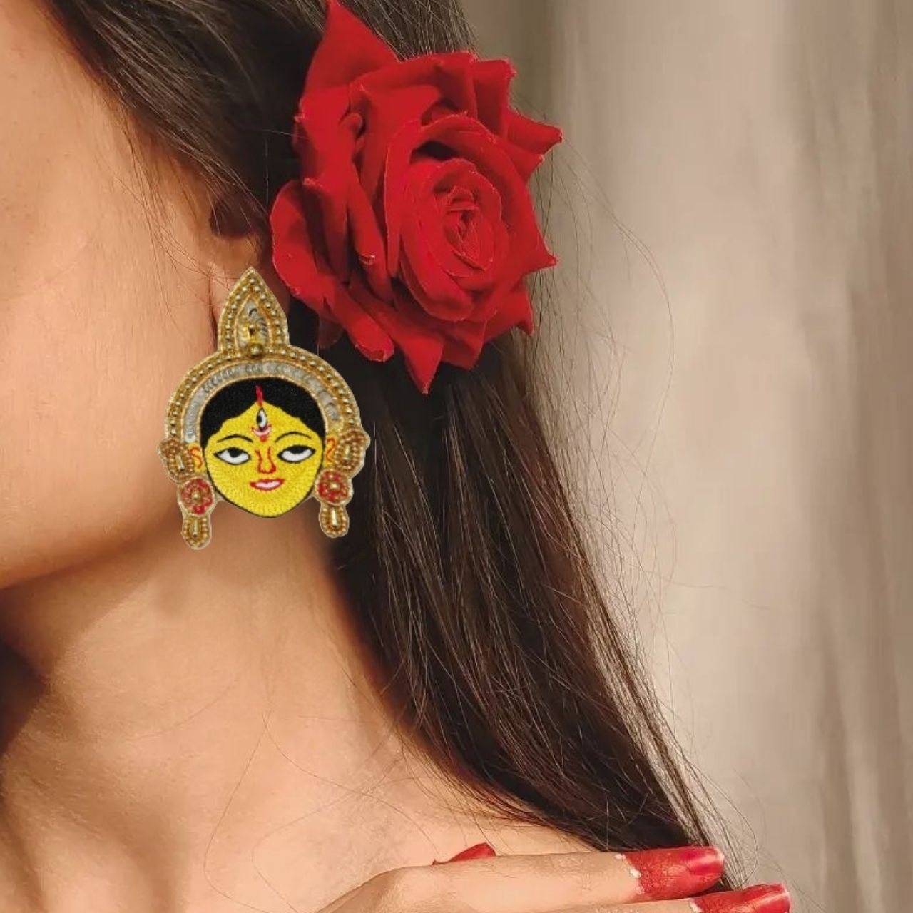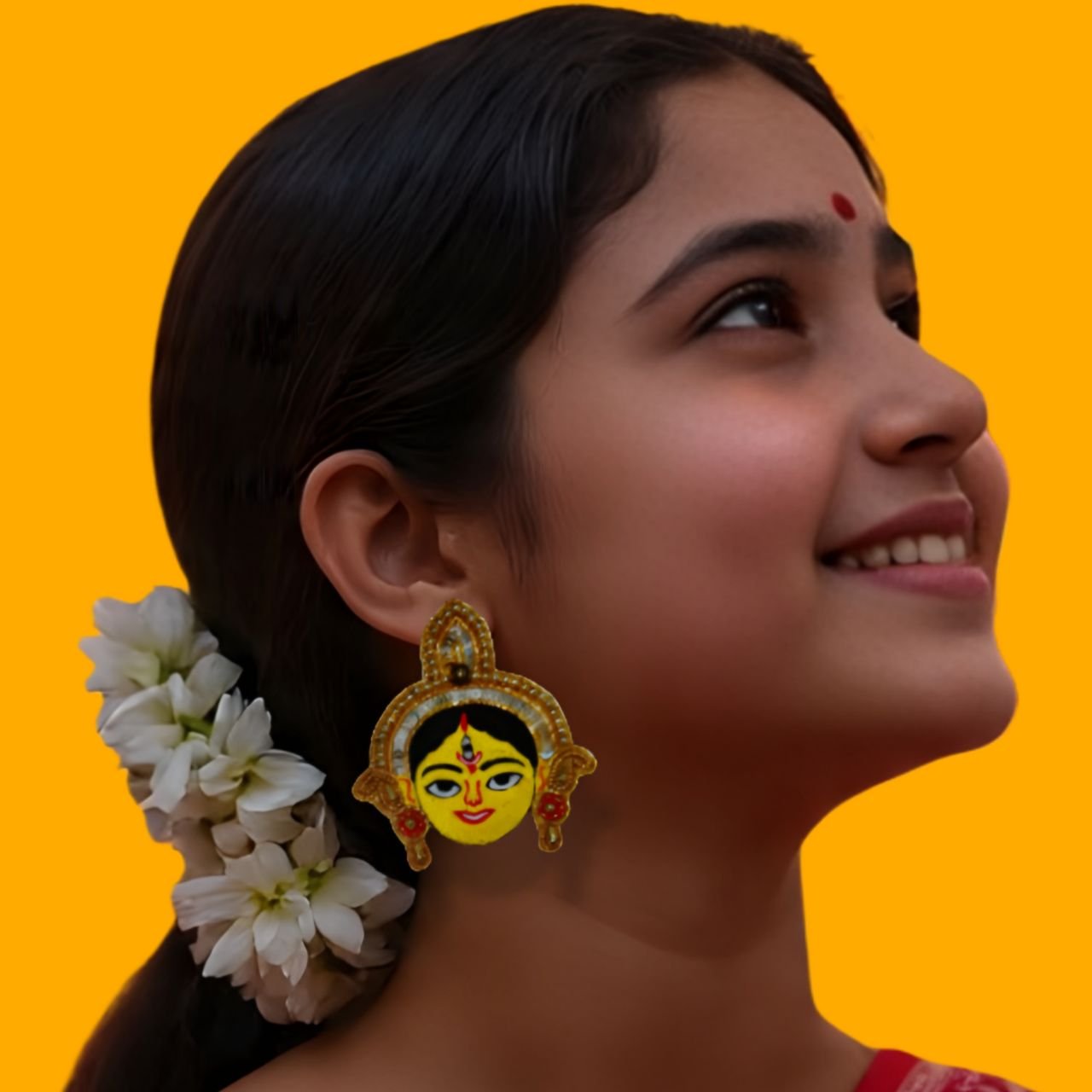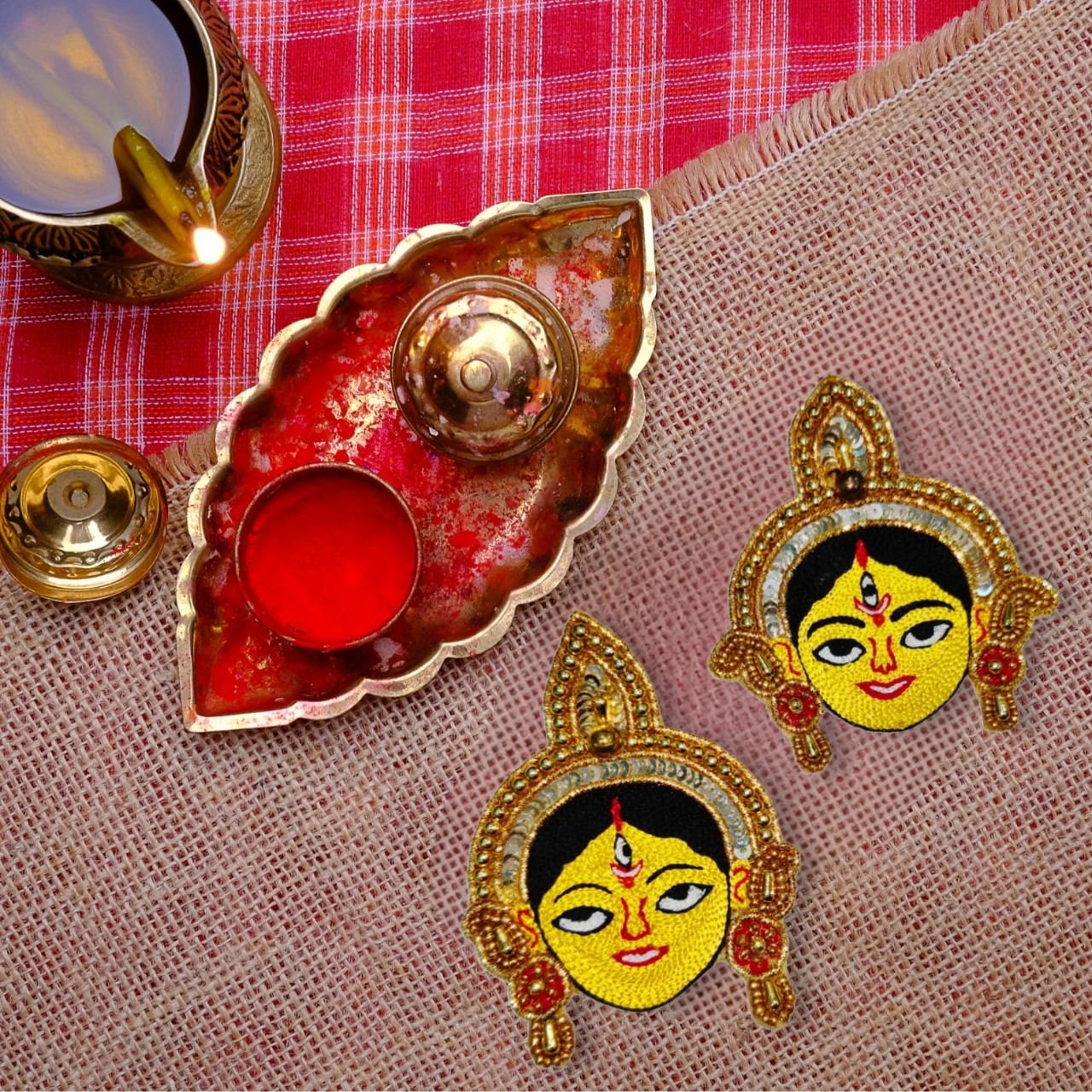 Find the voice of Goddess Durga with this hand crafted Durga Ear rings. The once in a year Festival rises above Hatred, above Religion, above oppression. The design is the most iconic 500 year old traditional Durga Face still used by the makers of the Idol