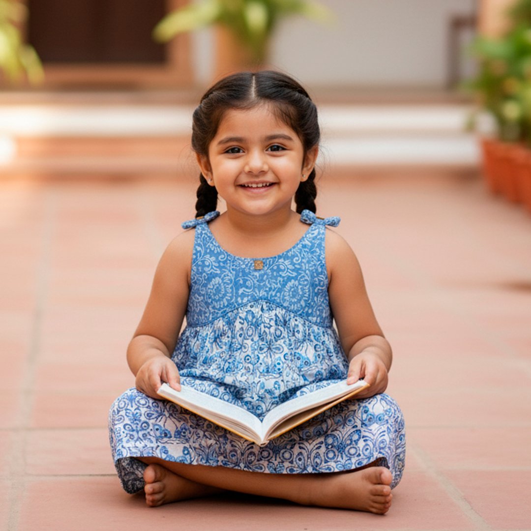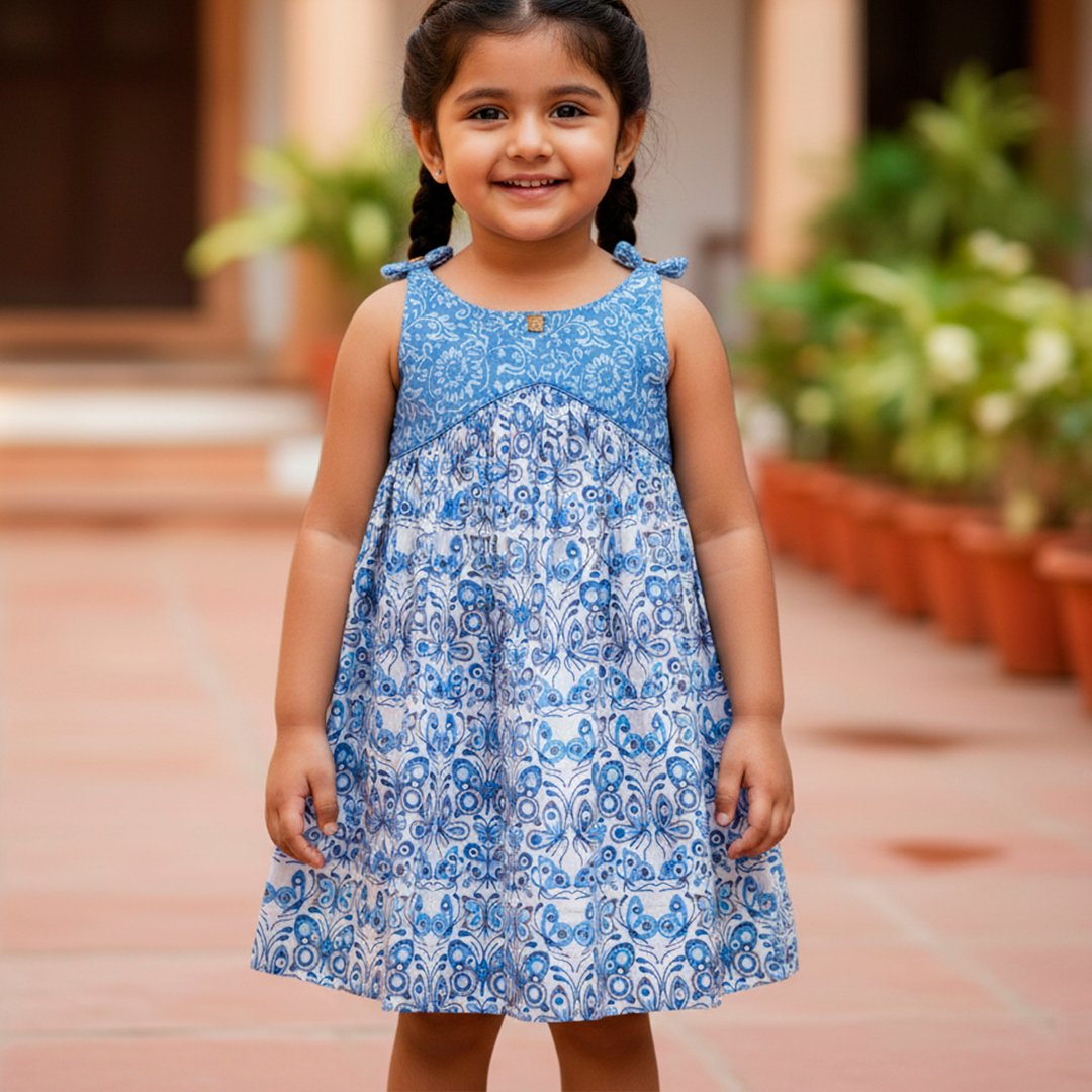 Elevate your little one’s wardrobe with the timeless charm of traditional craftsmanship. This delightful sleeveless romper is more than just an outfit; it’s a piece of wearable art, 100% hand-block printed by skilled artisans on premium, breathable cotton.