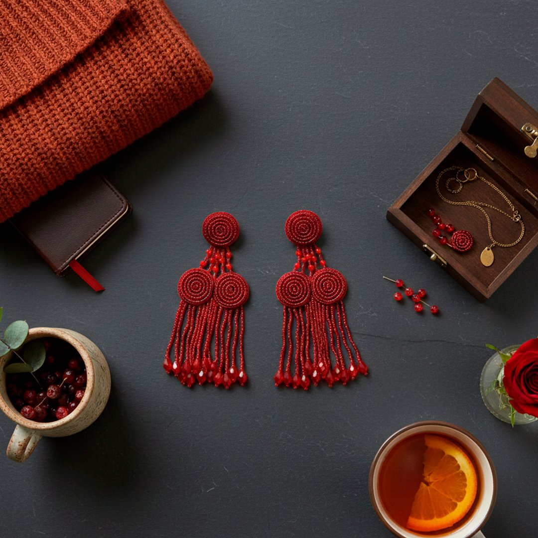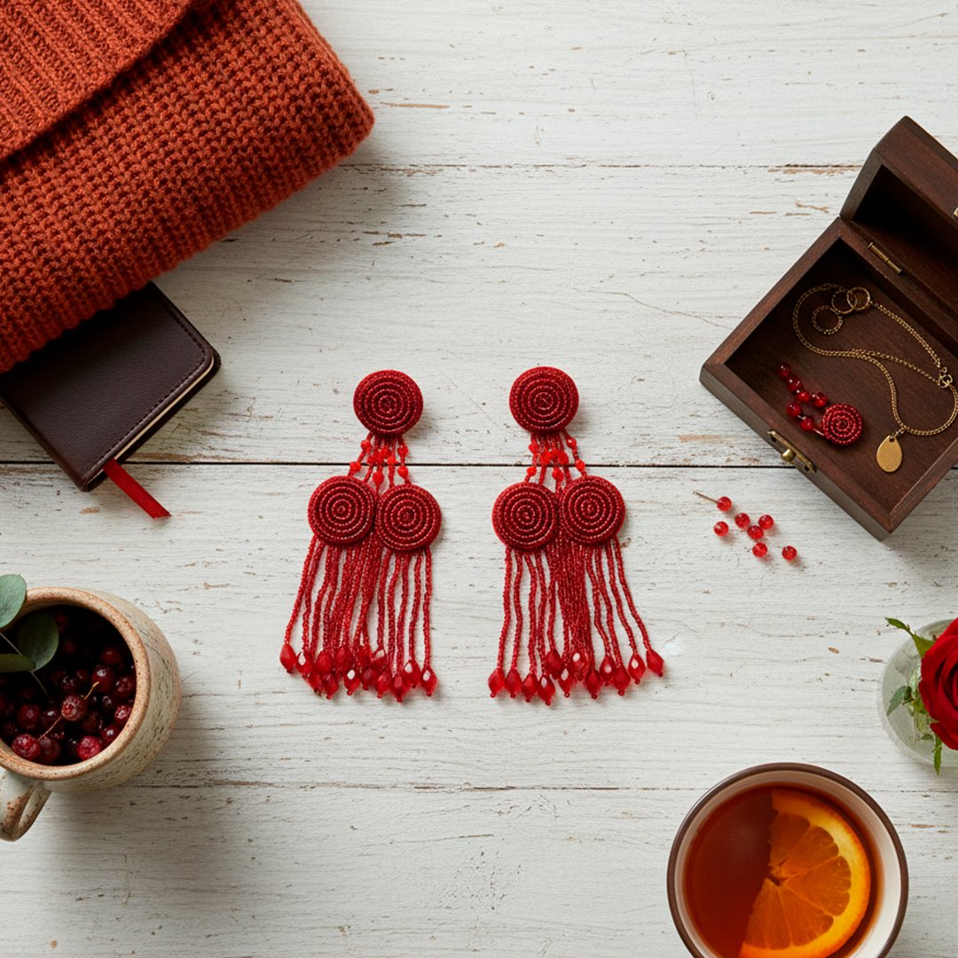 Red Dangler Handmade Stylish Unique Traditional EarringRed Dangler Handmade Stylish Unique Traditional Earring