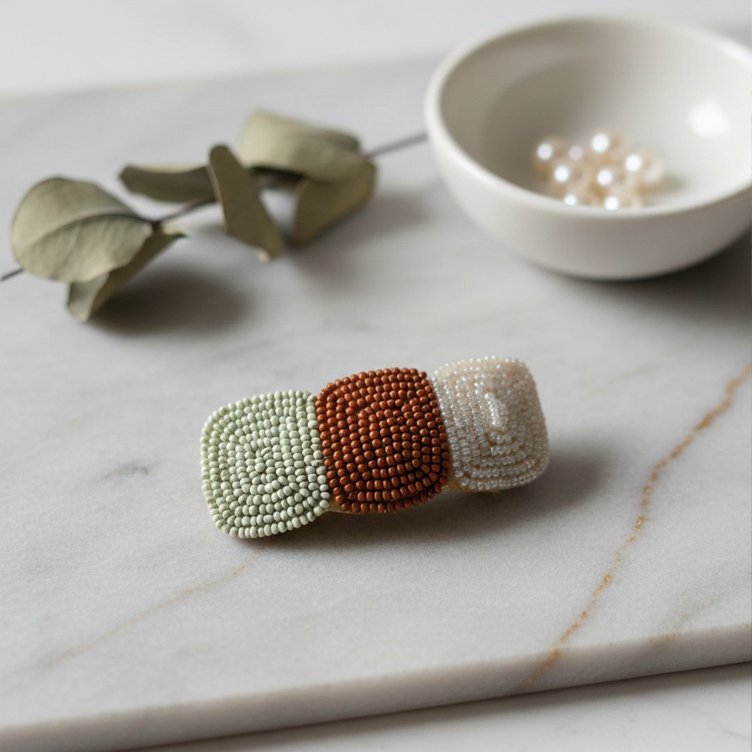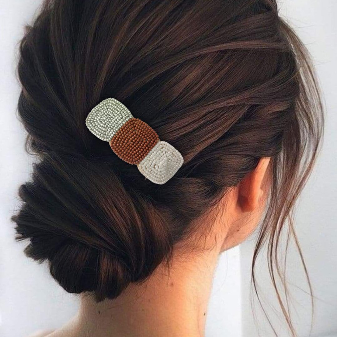 Stylish Latest Grey Brown White Beads Hairclip |