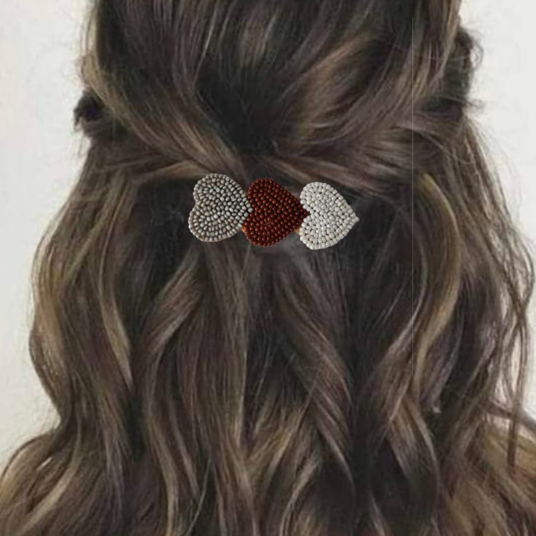 This Triple Heart hairclip adds a heartfelt touch to your hairstyle.